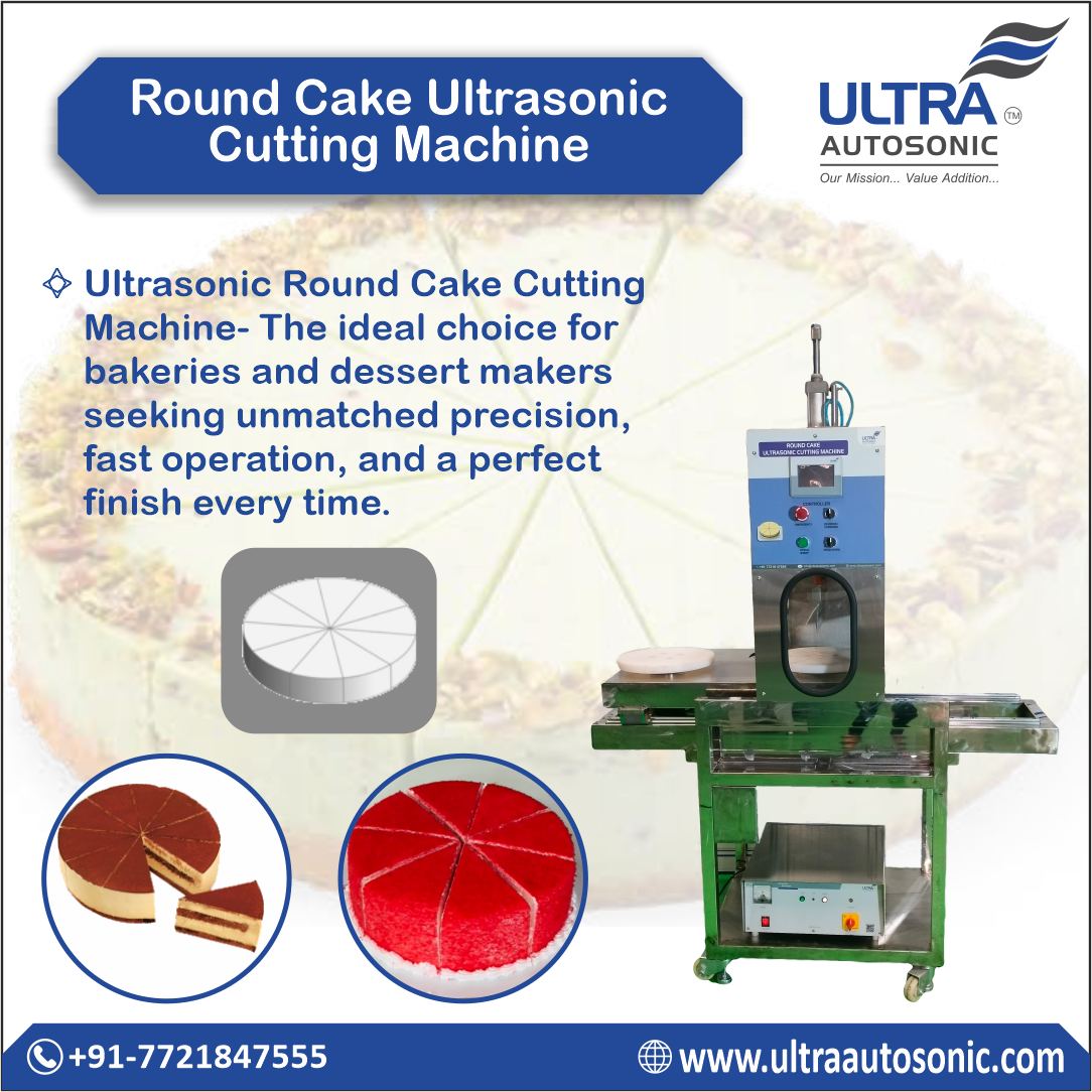 Our Ultrasonic Round Cake Cutting Machine delivers ultra-clean, accurate slices for round cakesβboosting efficiency, hygiene, and presentation in every cut.Achieve flawless, uniform cake slices with our Ultrasonic Round Cake Cutting Machine. Designed for clean, precise cutting without crushing or sticking, it ensures speed, consistency, and superior finish for round cakes of all types. +91-7721847555 / 7717577176